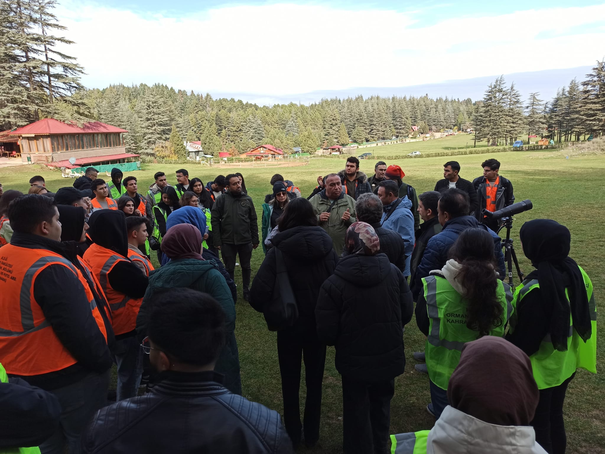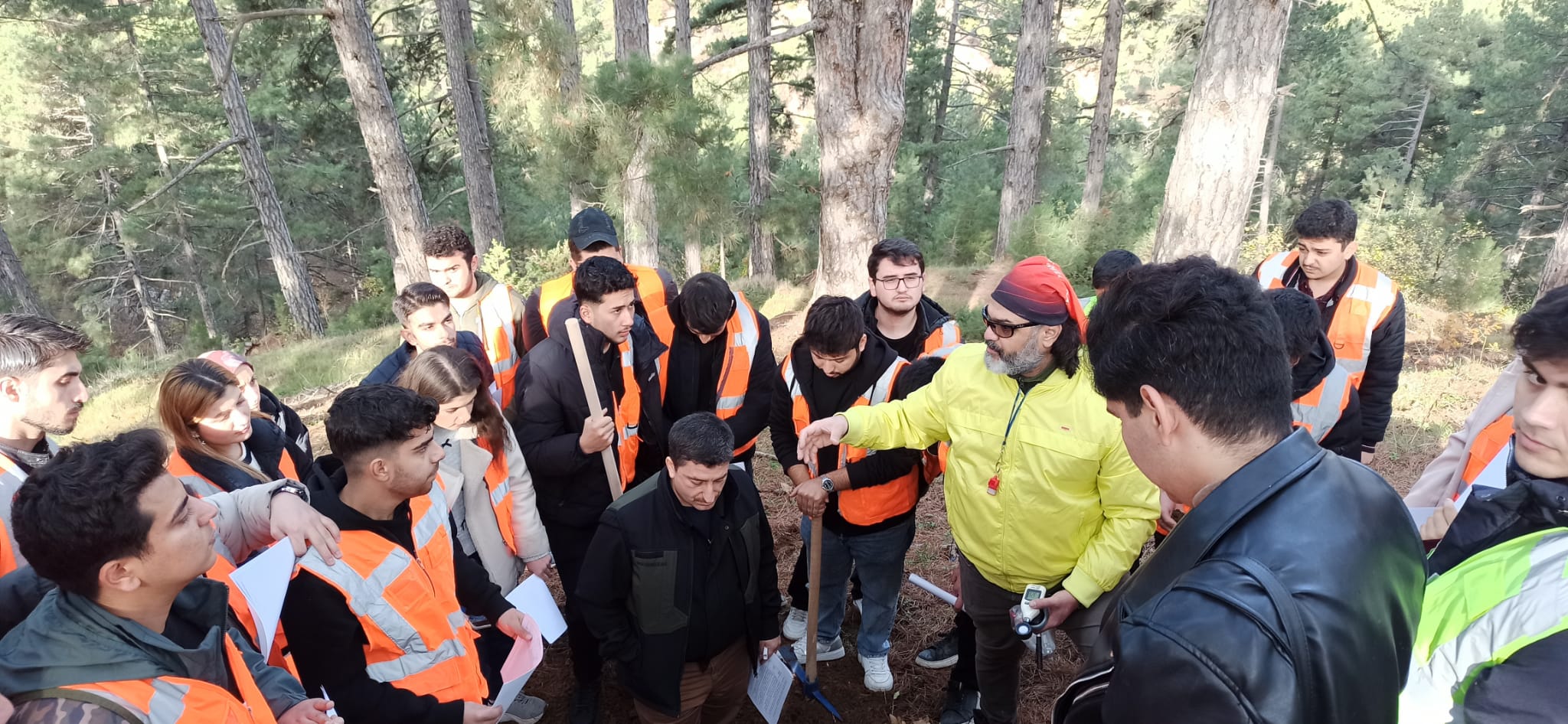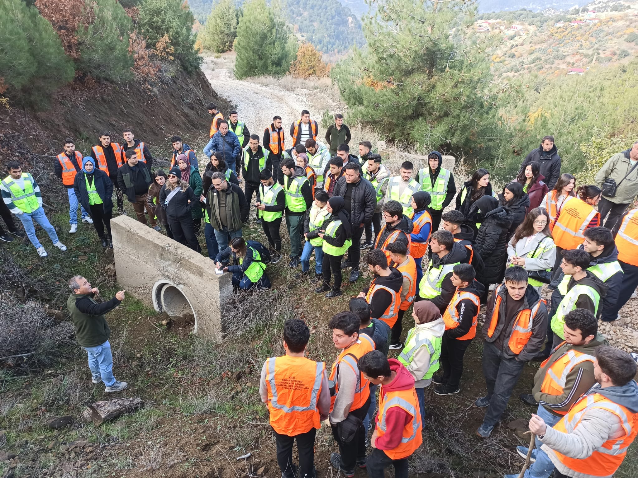 Bölümümüz 2. ve 3. sınıf öğrencilerine yönelik; "Yaban Hayatı ve Amenajmanı (Prof. Dr. Selçuk İNAÇ) , Toprak İlmi (Doç. Dr. Emre BABÜR), Ölçme ve Harita Bilgisi (Doç. Dr. Sercan GÜLCİ), Genel Ekoloji (Dr. Öğr. Üyesi Uğur KEZİK) ve Orman Yolları (Doç. Dr. Neşe GÜLCİ)" dersleri kapsmında 04.12.2025 tarihinde Başkonuş Araştırma Ormanımızda arazi uygulaması gerçekleştirilmiştir. Öğrencilerimize ilgili dersler bünyesinde önemli bilgiler anlatılmıştır. Arazi uygulamasında; Kahramanmaraş Doğa Koruma ve Milli Parklar Müdür V. Faruk TÜLÜCÜ, Başkonuş Orman İşletme Şefi Halil KÜRTÜL, Makina İkmal Şube Müdürlüğünden Ziraat Mühendisi Faruk Ziya BİLİCİ' de bulunmuştur.